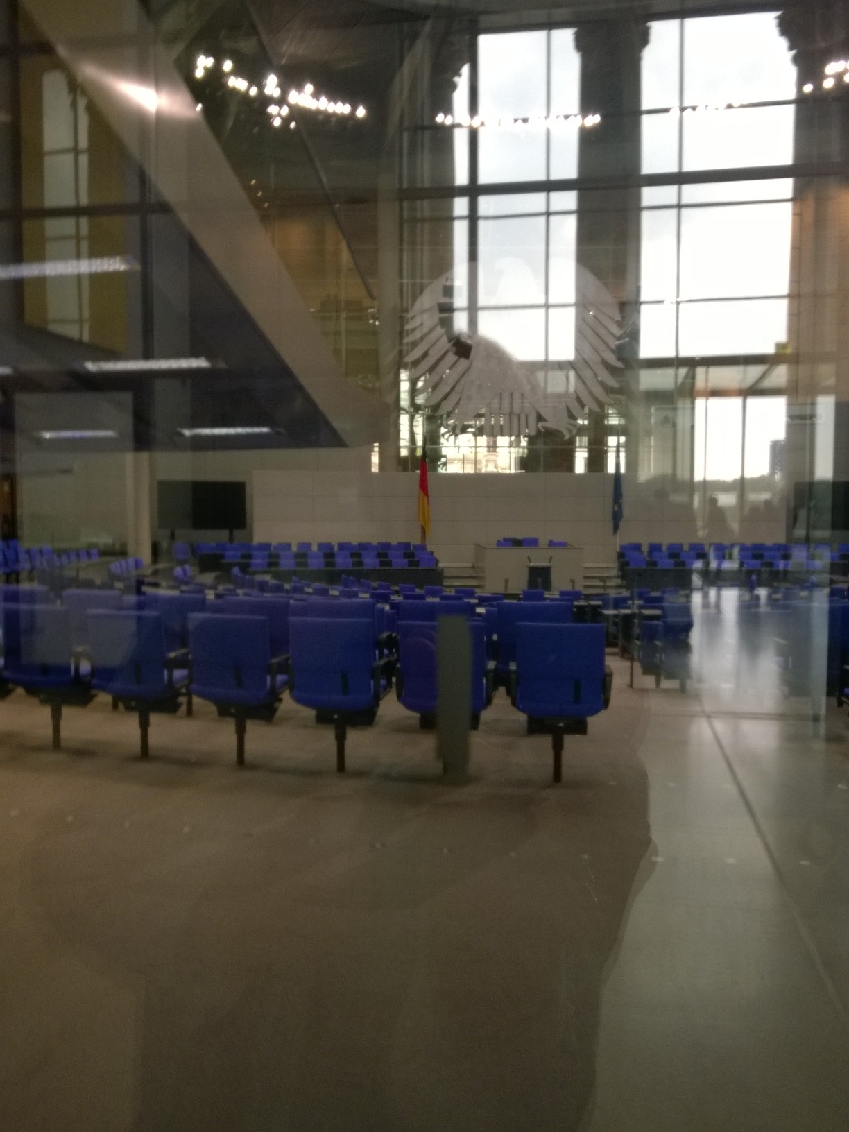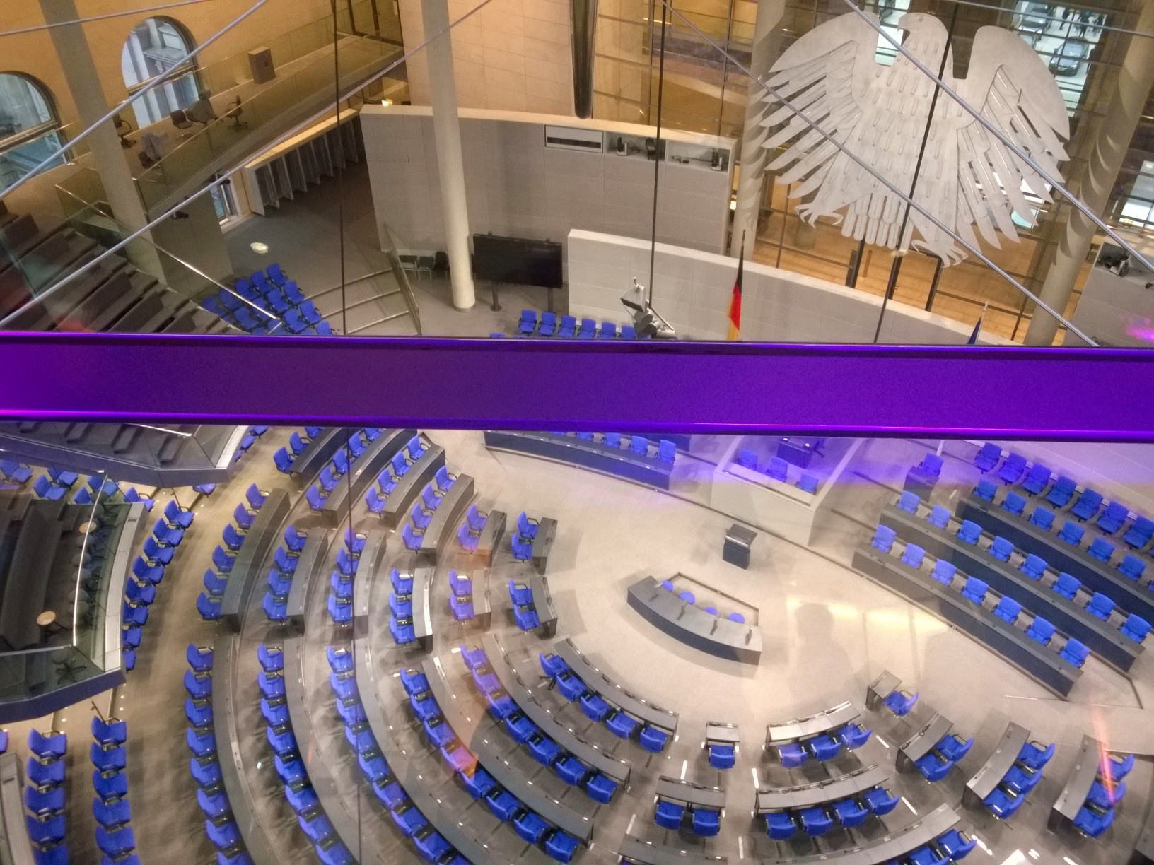 - Reichstagsgebäude Sicht in den Plenarsaal von der Fraktionsebene