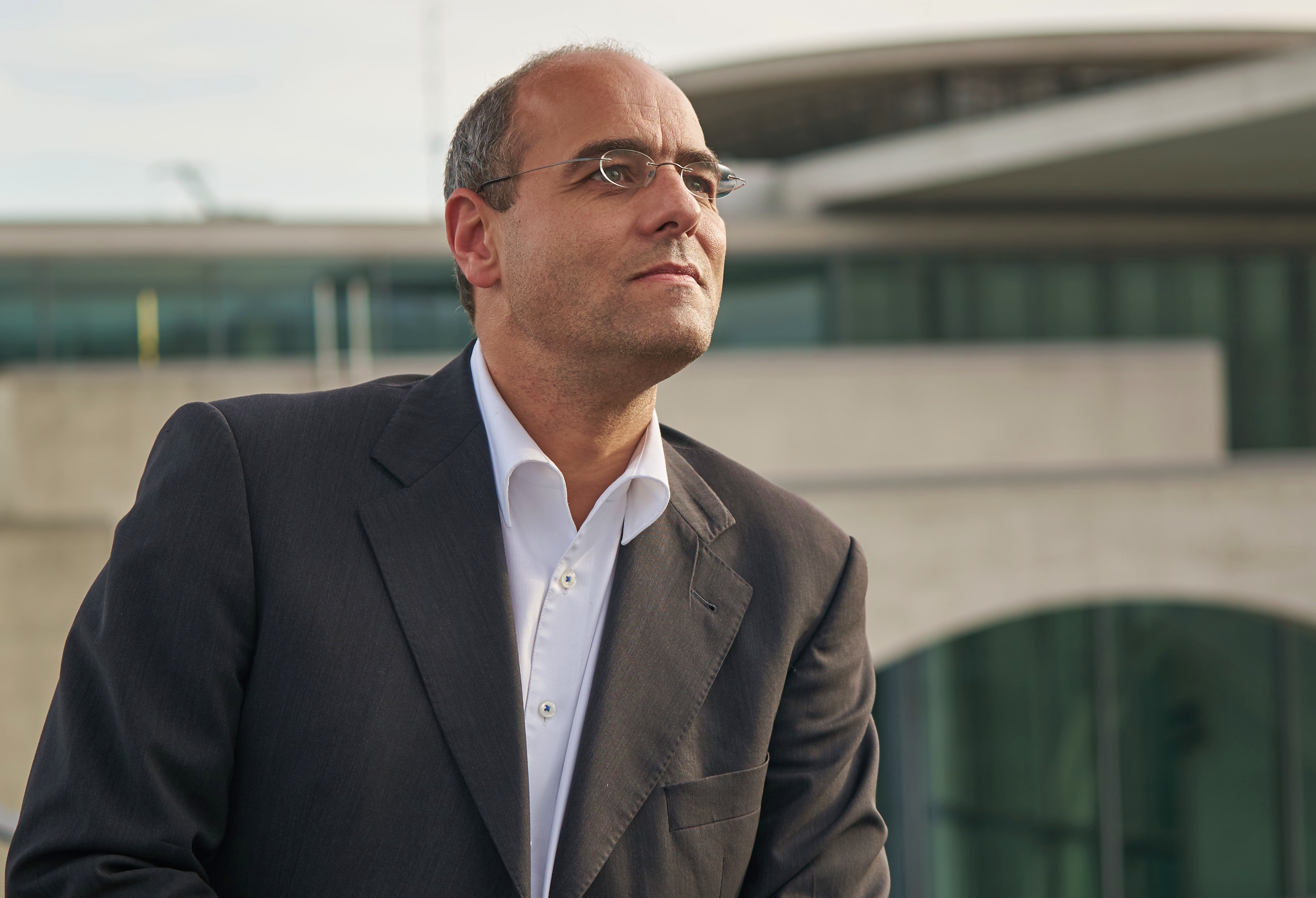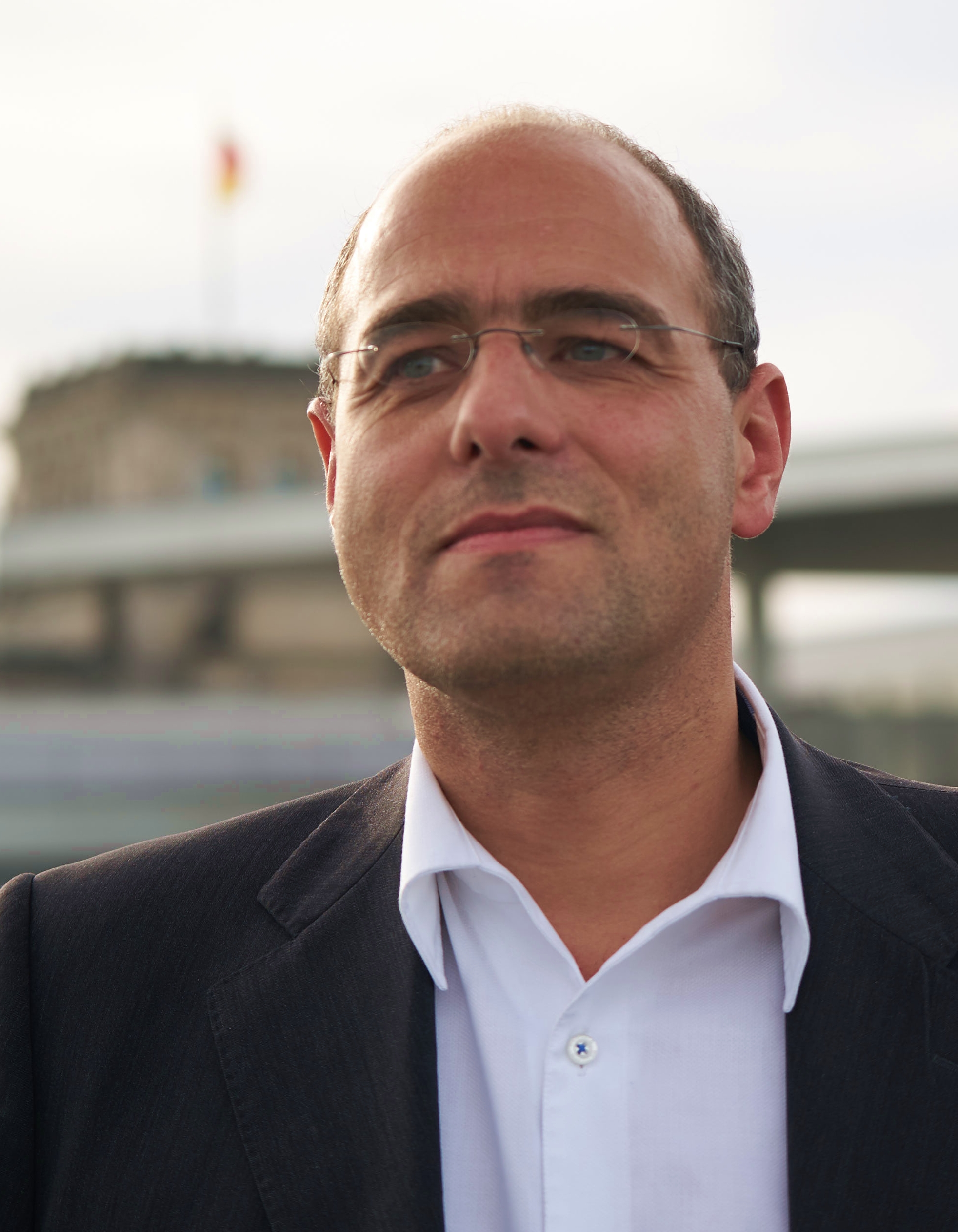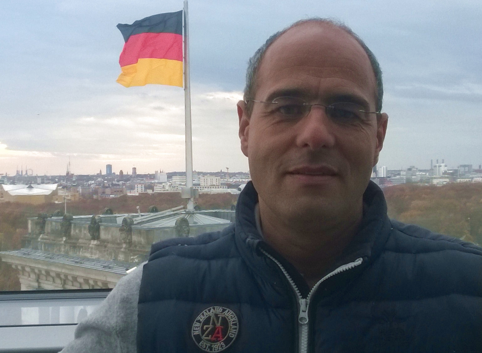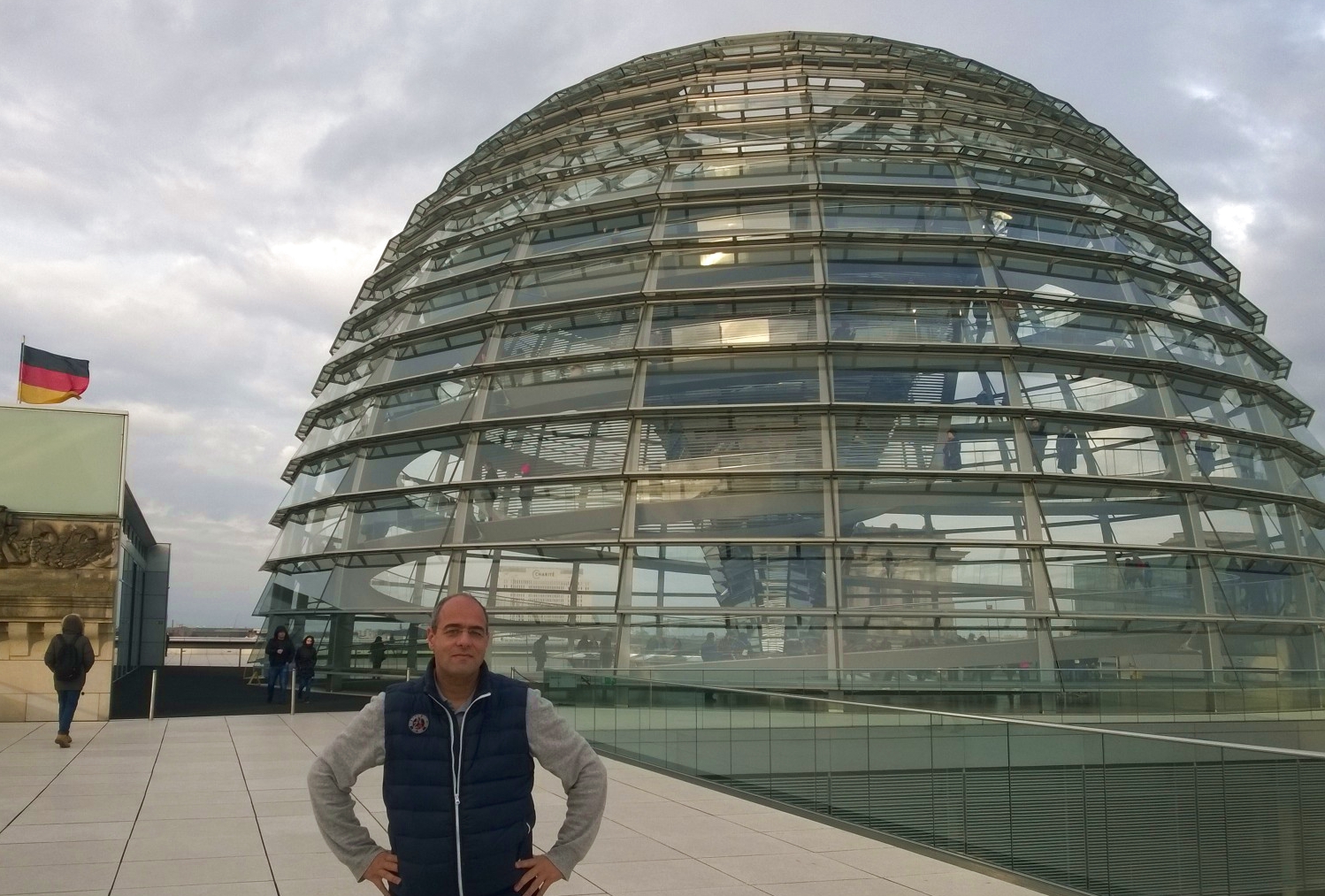 - Peter Boehringer auf dem Dach des Reichstagsgebäudes mit Kuppelbau