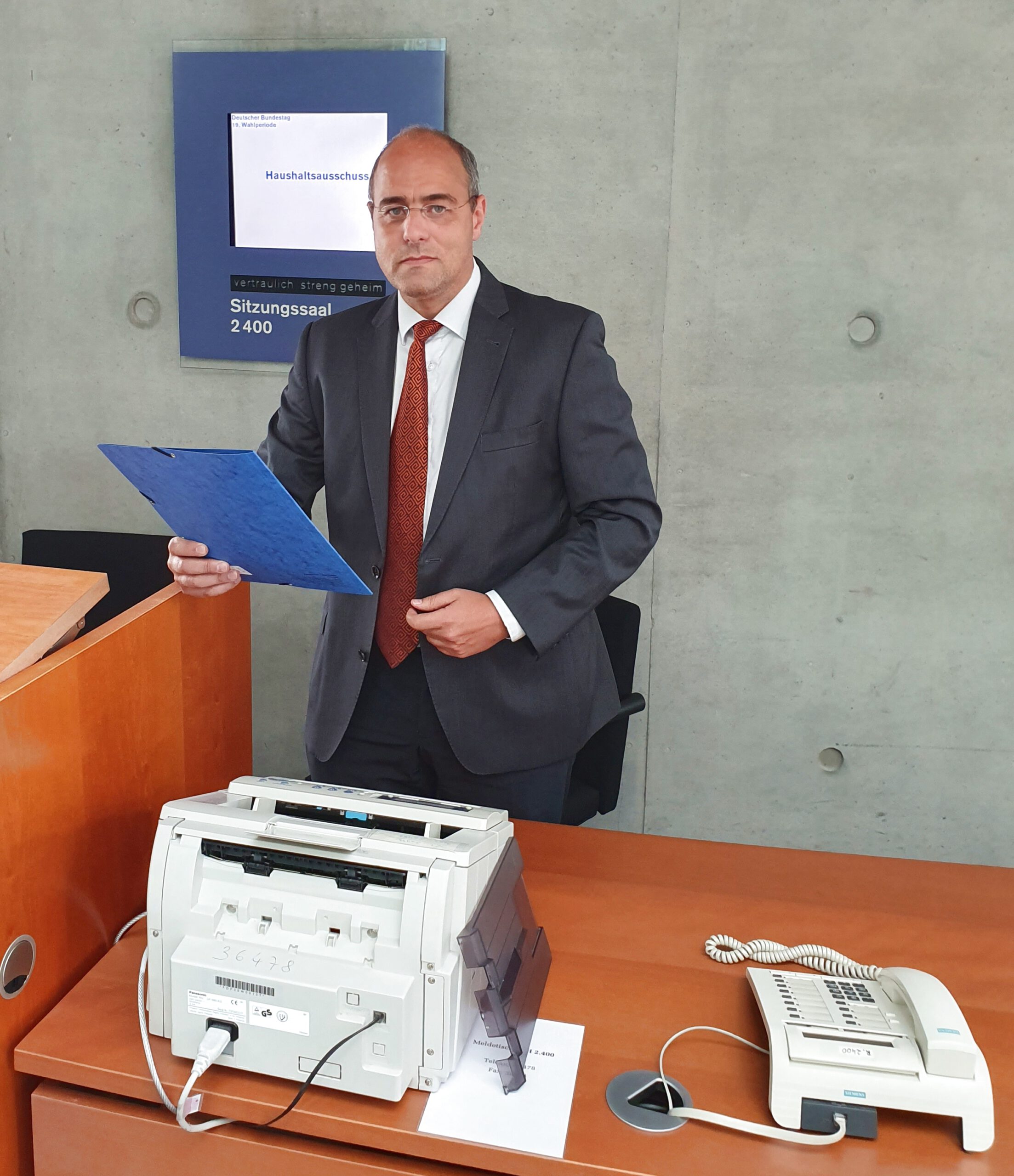 - Peter Boehringer, Schreibtisch Haushaltsausschuss; Bild: H. Dreblow